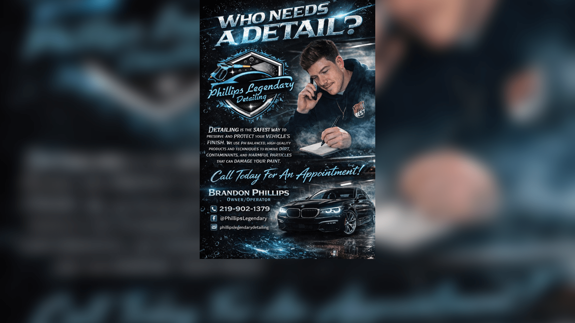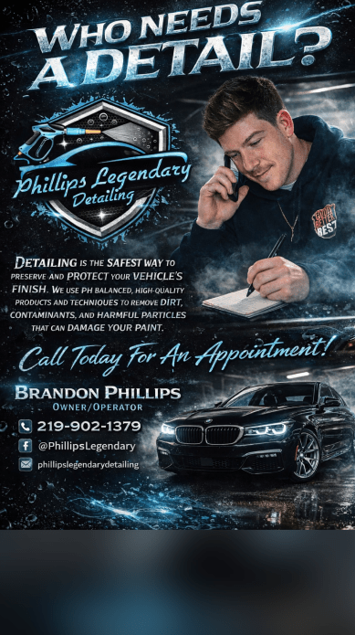 "Hands down best detail we have gotten for our car! Pays attention to detail and does a fantastic job making your car look like brand new! Definitely will be using him again! Phillips Legendary Detailing is a must! "